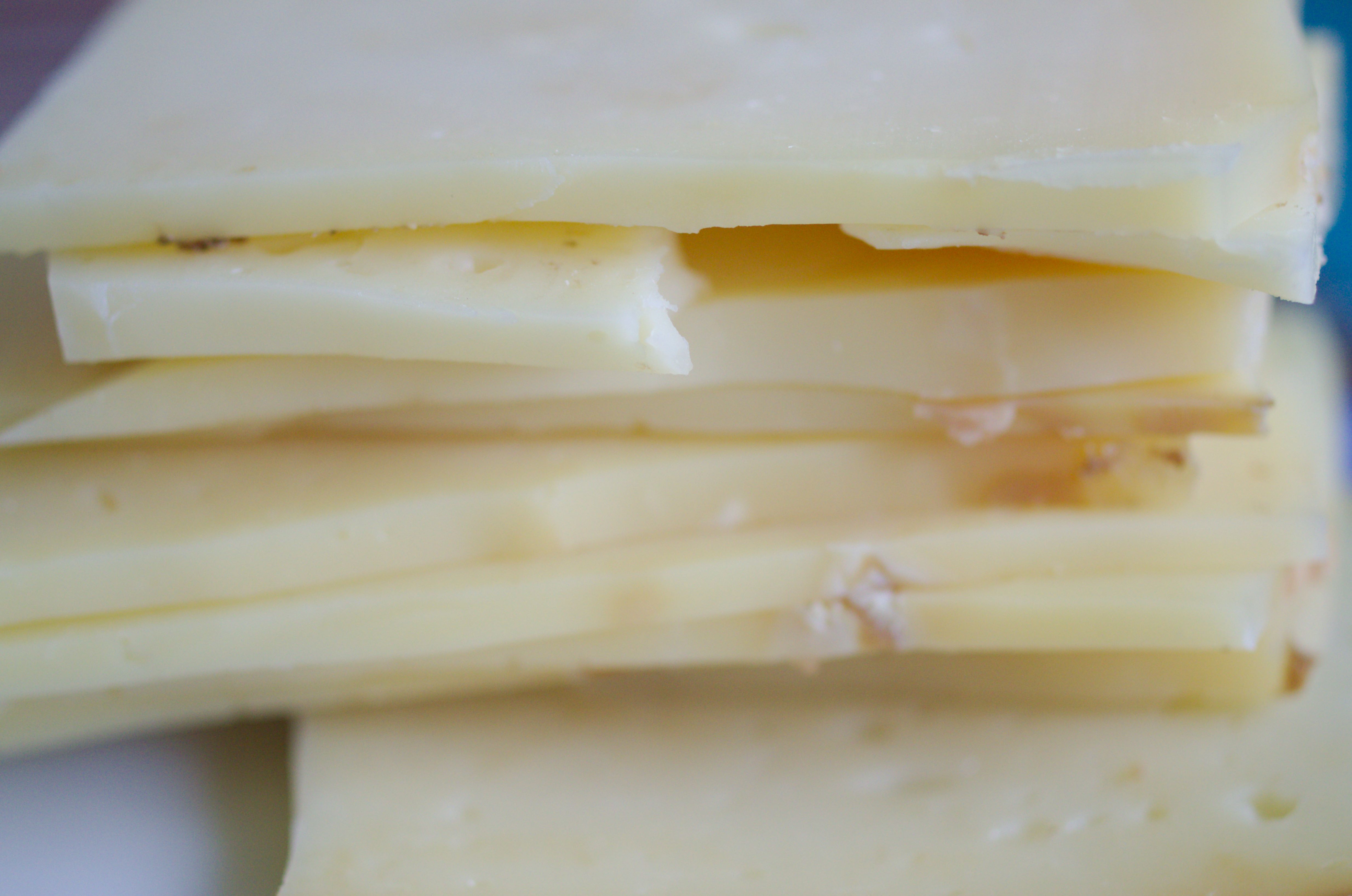 Also cut some tomme slices. Pierre is very good at making tomme slices that are all thin and regular. I… I cut some tomme bits.
