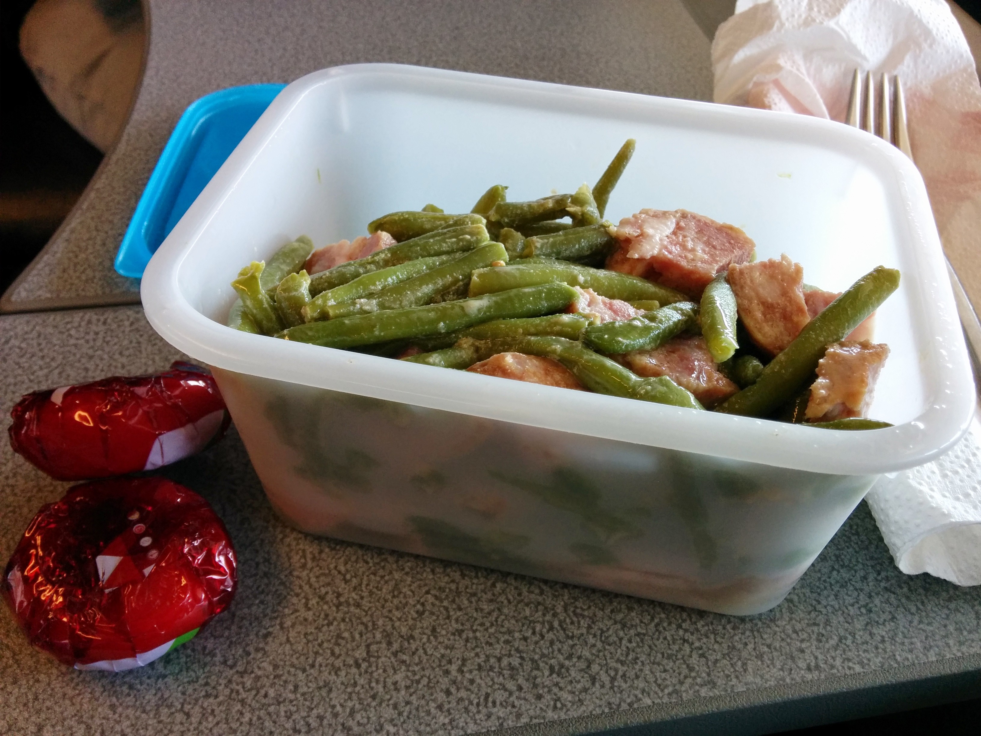And since the contest theme is boxes, even if mine isn’t very pretty, as a bonus, a picture of the last time we ate that on the train 🙂