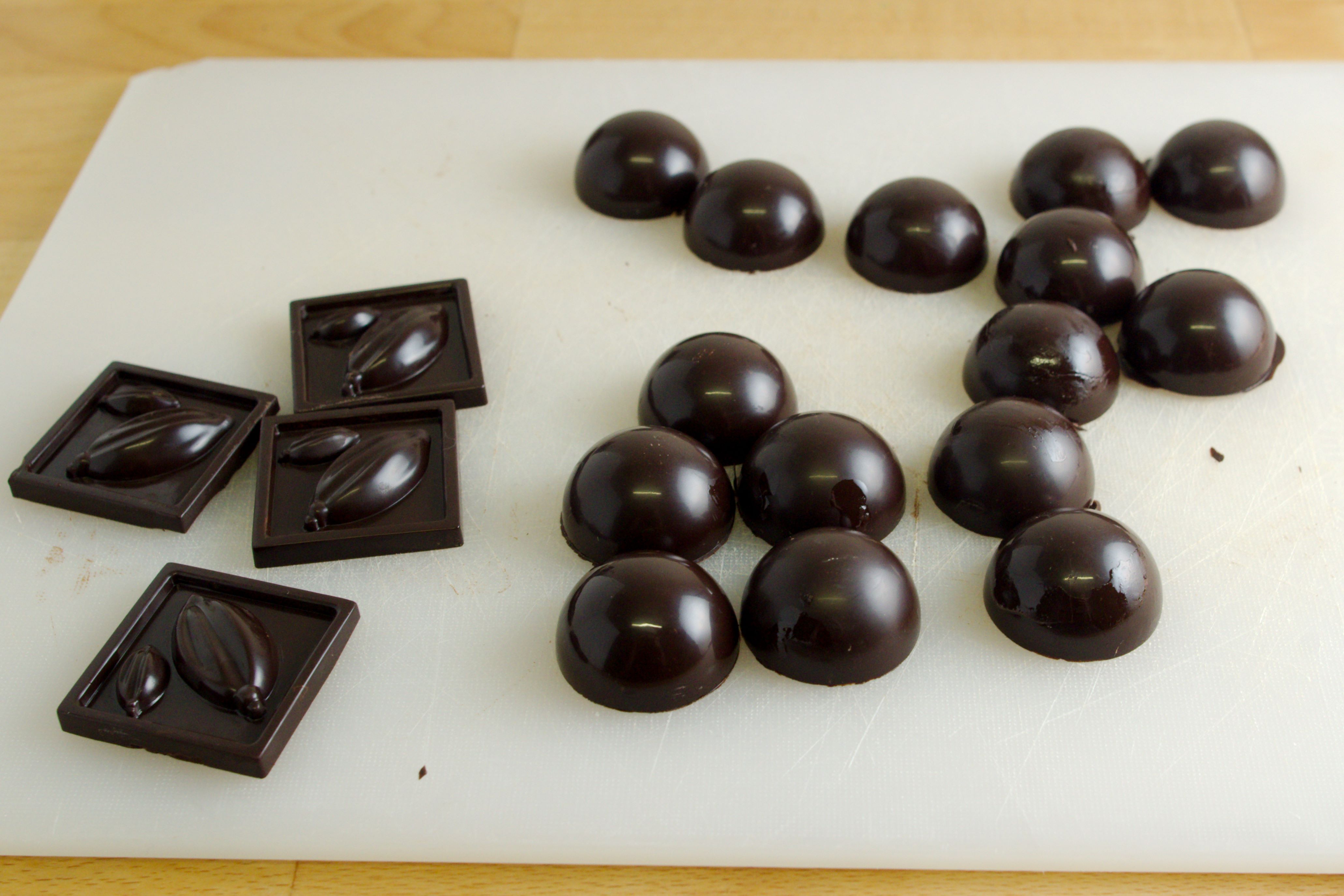 - a chocolate mold. You can find these in silicon and in polycarbonate; I prefer the polycarbonate ones: if the tempering was done correctly, the results are prettier and even easier to remove from the mold than with a silicone one.
