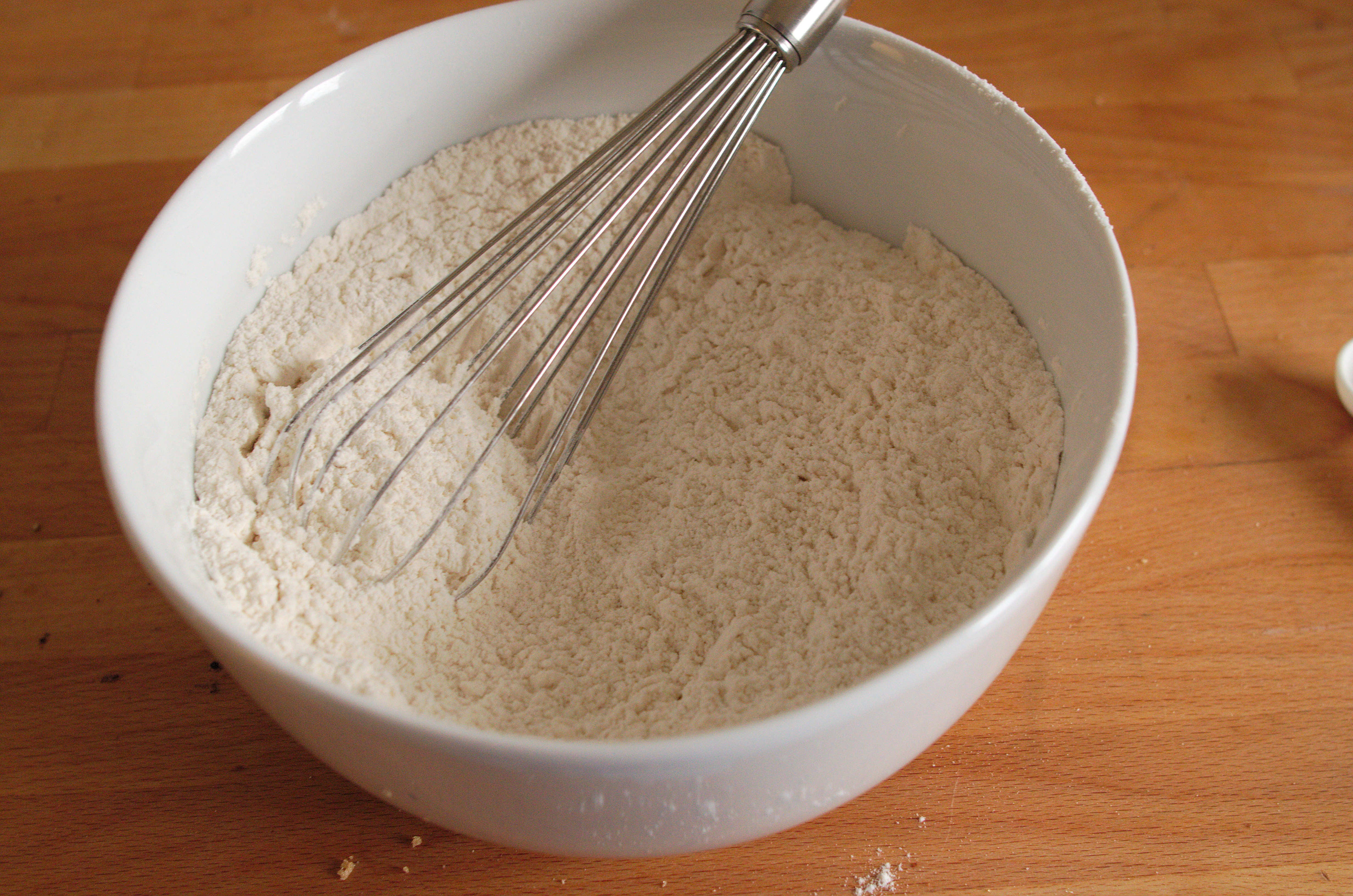 Mélanger ensemble la farine, le sel et le bicarbonate de soude.