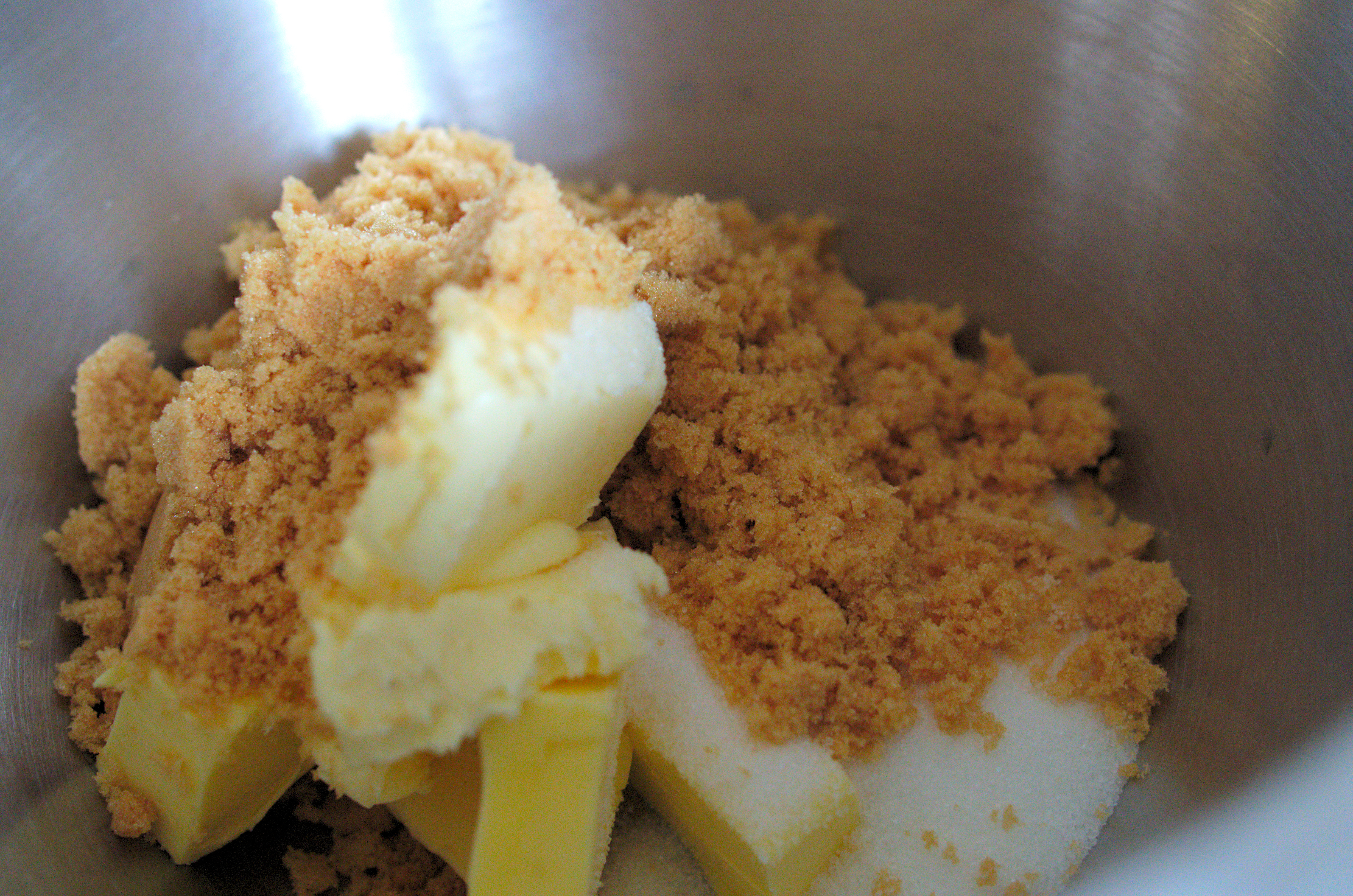 Put the butter, sugar, brown sugar and vanilla in the food processor bowl.